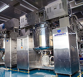 如全自動乳化系統、全自動水乳灌裝機、全自動膏霜灌裝機、全自動封尾機、全自動壓粉機、全自動口紅灌裝機、全自動睫毛膏灌裝機、全自動EDI水處理設備。